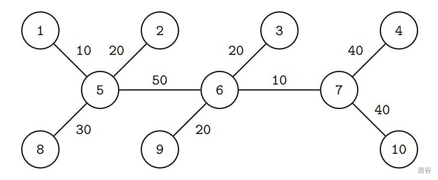 Input begins with a line containing an integer: () representing the number of junctions in Treantis. The next lines each contains three integers: (; ) representing a road and its increment in happiness if this road is passed by a parade, respectively. It is guaranteed that one can go from one junction to any other junction using a sequence of roads.