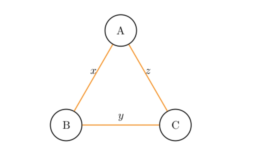 在平行世界中,有 A,B,C 三座城市,它们构成了三角洲。